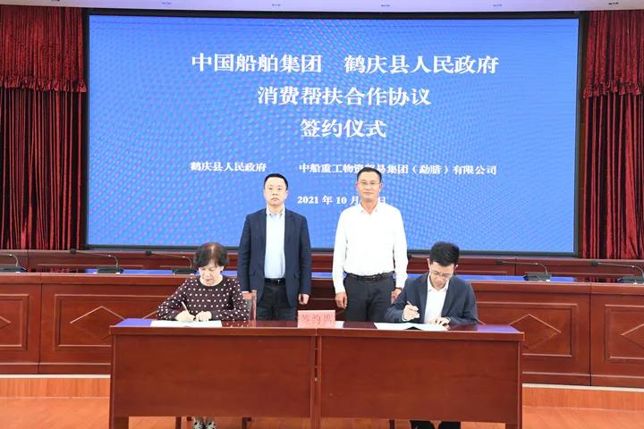 調研期間,中國船舶集團旗下物貿勐臘公司與鶴慶縣人民政府簽訂了2021年度消費幫扶協議。鶴慶縣相關負責人介紹了鶴慶經濟社會發展情況。盛紀綱對鶴慶縣取得的成績表示贊賞和欣慰,對鶴慶縣給予中國船舶集團定點幫扶工作的支持表示感謝。
