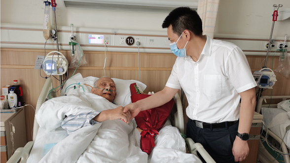 七二六所黨委副書記帶隊(duì)前往醫(yī)院看望慰問了在醫(yī)院住院治療的離休干部紀(jì)炎輝,向他致以崇高的敬意和親切的問候,并送上慰問金。