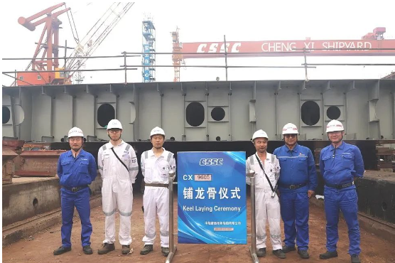 該船同為中船澄西為交銀金租建造的62000噸重吊船,其首個分段上船臺,開始連續搭載。