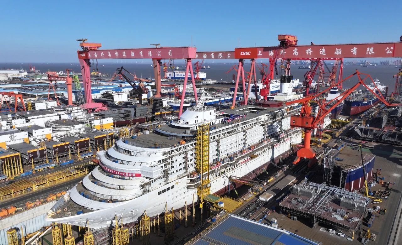 1月15日,第二艘國產大型郵輪“愛達·花城號”在中國船舶集團旗下外高橋造船實現全船貫通的里程碑節點,全面轉入全船內裝工程、設備、系統調試下半場。