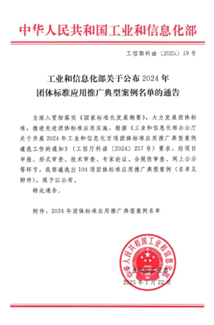 目前,集團公司已連續六年入選工信部團體標準應用推廣典型案例。