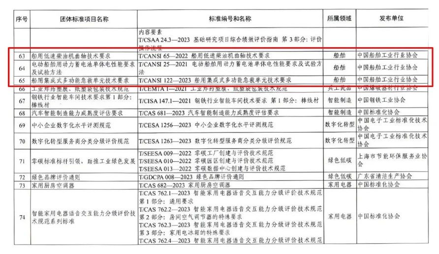 · 中船動力研究院有限公司牽頭研制的T/CANSI 65—2022《船用低速柴油機曲軸技術要求》