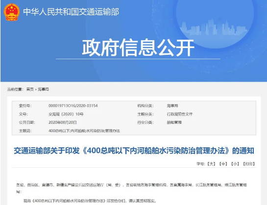 該《辦法》共包含七個章節,旨在防治內河船舶污染水域環境,涉及“生活污水污染防治”“船舶垃圾污染防治”“機器處所油污水污染防治”“洗艙水污染防治”等內容。
