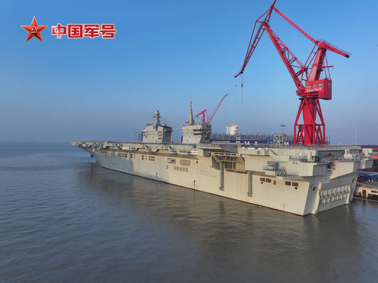 在五艘拖船的牽引下,四川艦離開滬東中華造船廠碼頭駛向相關(guān)海域。四川艦舷號為51,是海軍新一代兩棲攻擊艦,滿載排水量4萬余噸,設(shè)置雙艦島式上層建筑和全縱通飛行甲板,創(chuàng)新應(yīng)用電磁彈射和阻攔技術(shù),可搭載固定翼飛機(jī)、直升機(jī)、兩棲裝備等。